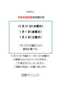 1月休診日のお知らせ